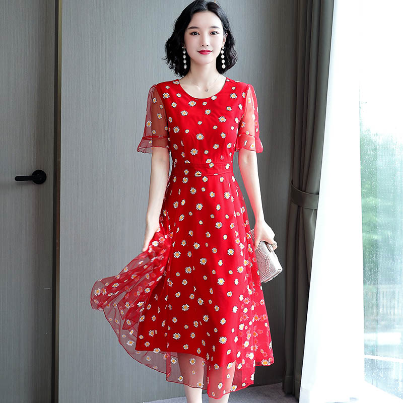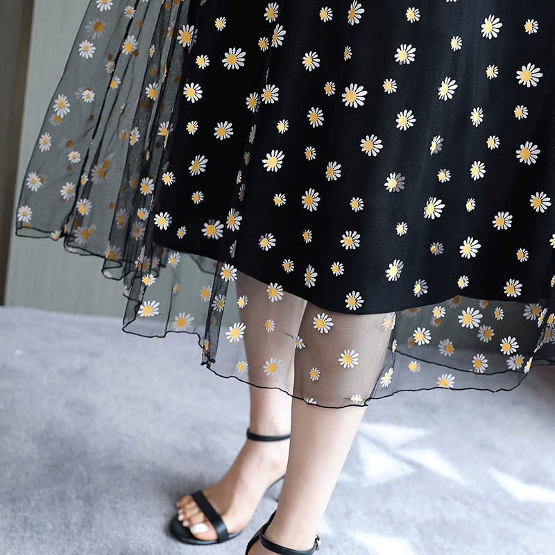 长款 碎花连衣裙2024新款 休闲时尚 显瘦遮肉大码 气质网纱裙子 夏修身
