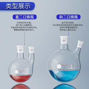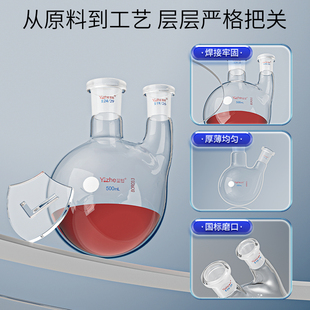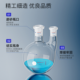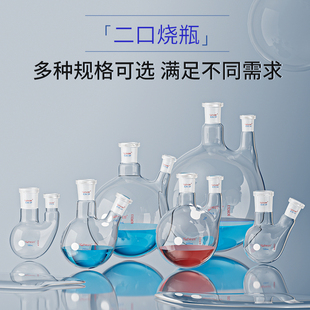 翌哲定制 斜二口圆底烧瓶两口双口双颈二颈烧瓶蒸馏反应瓶玻璃化学实验室器材1000 5000ml 10l 3000