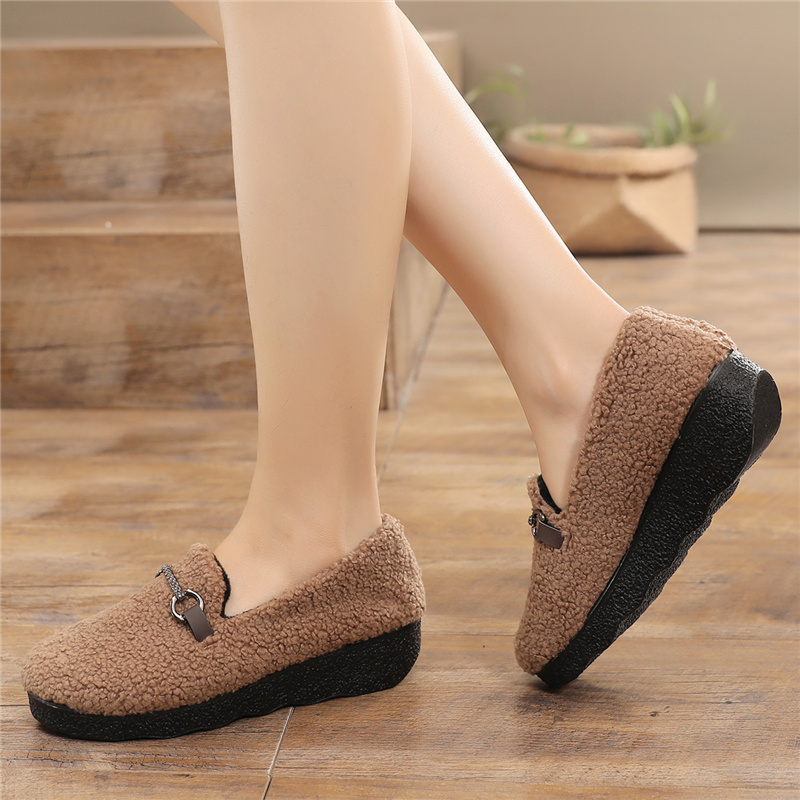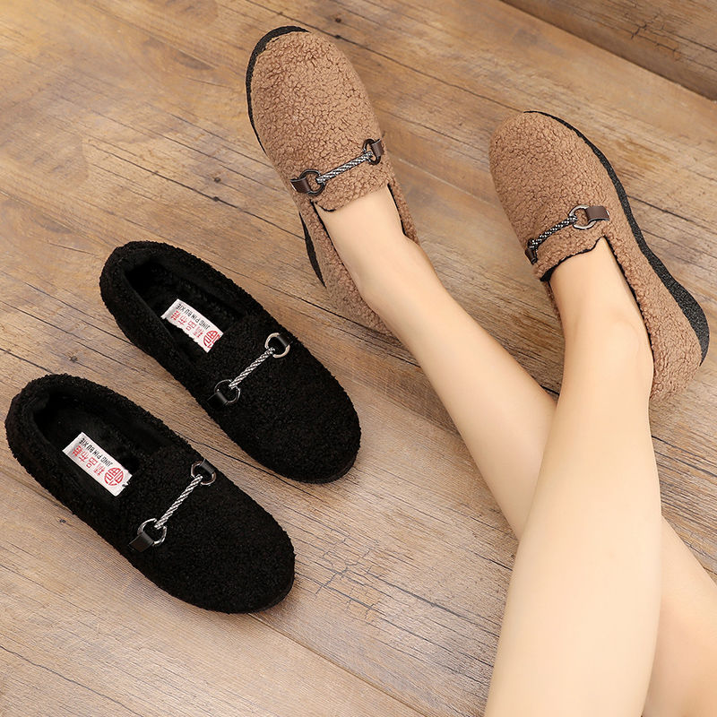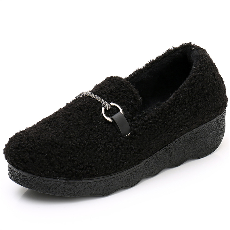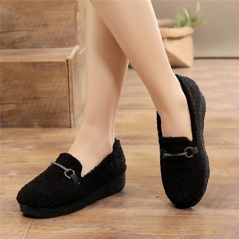 加绒豆豆女鞋 黑色工作鞋 新款 瓢鞋 松糕中跟厚底棉鞋 秋冬老北京布鞋