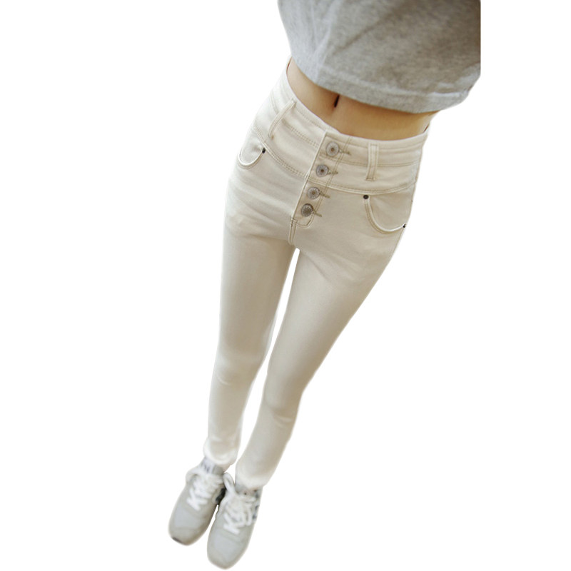 女九分裤 白色加绒打底裤 子春秋新款 显瘦小脚裤 外穿 修身 高腰牛仔裤