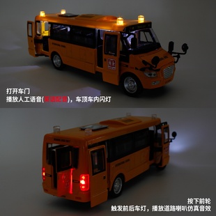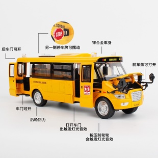 6岁可开门 校车模型合金公交车玩具校车巴士宝宝大号2 3岁男孩4