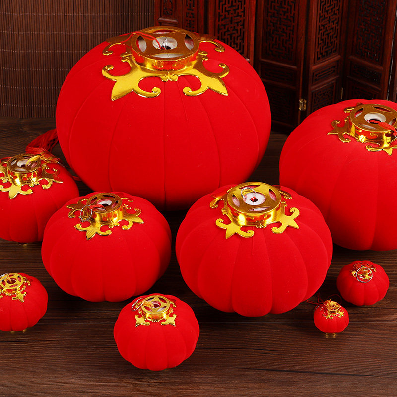 灯笼新年大红植绒小灯笼小区树上装 饰结婚喜庆乔迁室内外绿植挂件