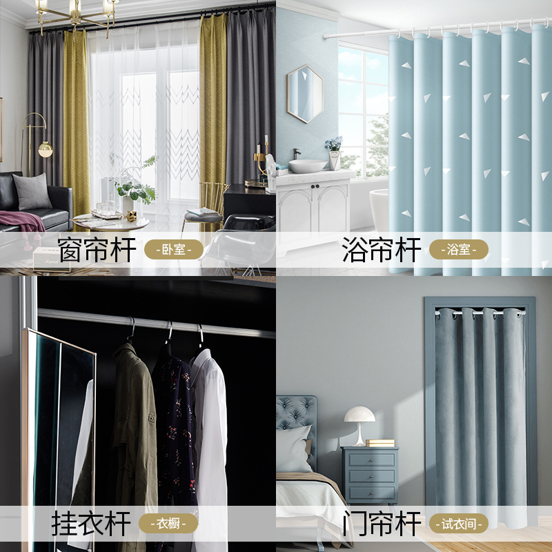 窗帘杆免打孔卧室窗帘架挂钩式 4米黑色伸缩杆收缩杆升缩杆浴帘杆
