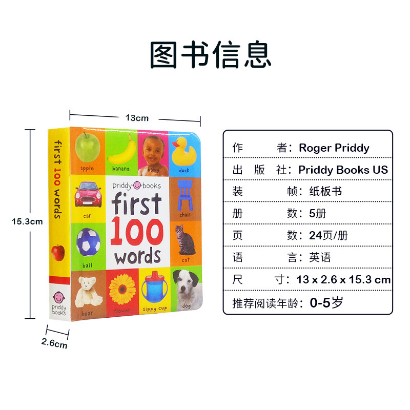 5册启蒙100词小开本纸板First Animals 100 Words Trucks儿童启蒙认知绘本first100words初级入门单词图解幼儿词典 Farm 英文原版
