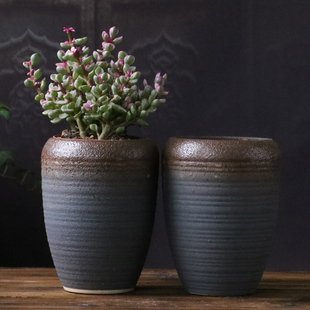 现代简约陶瓷小花盆轻奢高级感透气绿萝多肉家用客厅室内外带托盘
