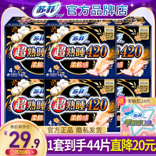 苏菲卫生巾棉柔夜用420超长产妇姨妈女组合装 官方旗舰店 整箱正品