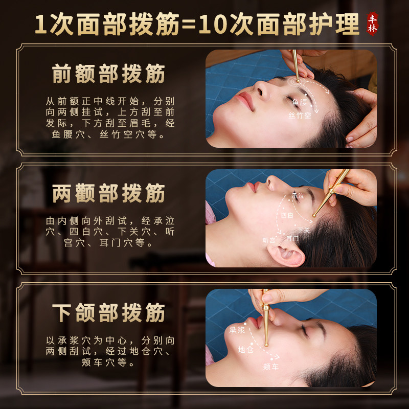 丰林纯黄铜面部拨筋棒美容院专用脸部黑眼圈点穴美容拨筋按摩工具