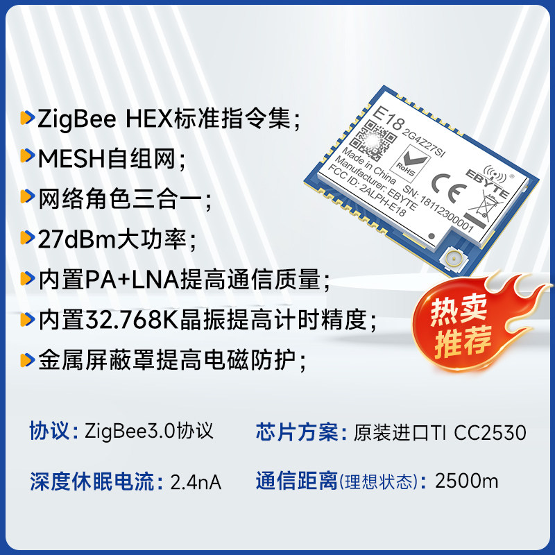 亿佰特ZigBee3.0自组网无线模块2.4G智能家居EFR32MG1B TLSR8258