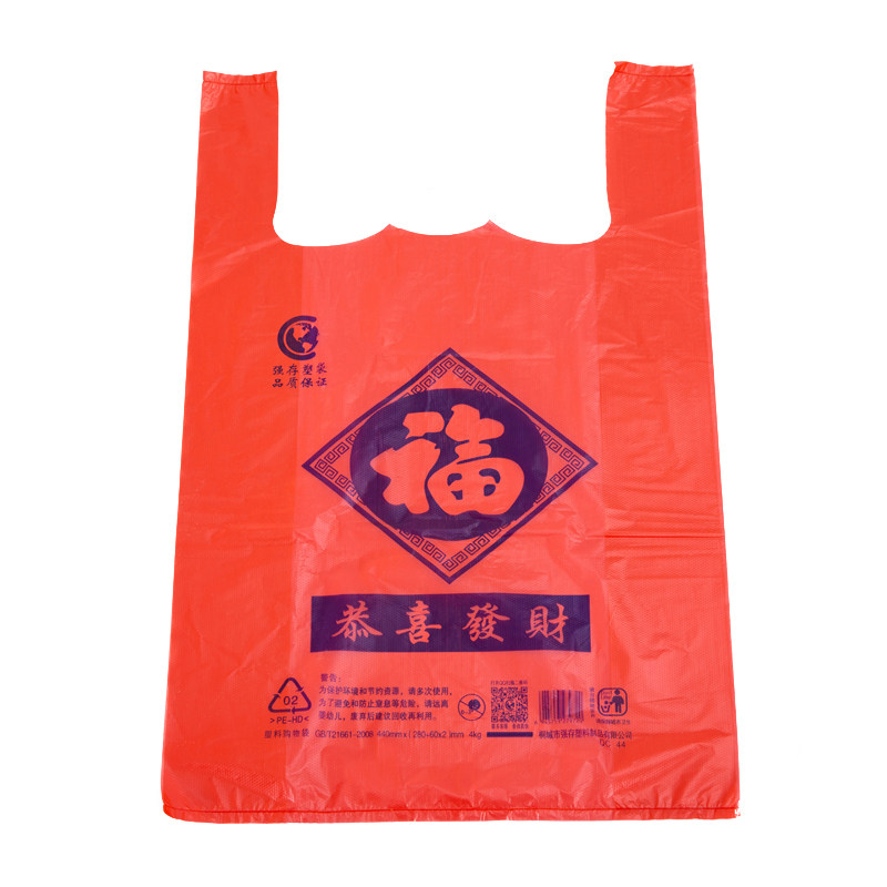 红色购物塑料袋背心方便手提袋拎袋超市马夹大中小特厚红福加大