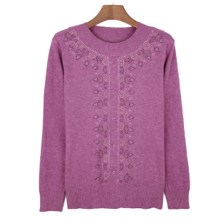 针织衫 中年妈妈秋冬新款 套头特大码 毛衣中老年妈妈装 上衣 圆领薄款