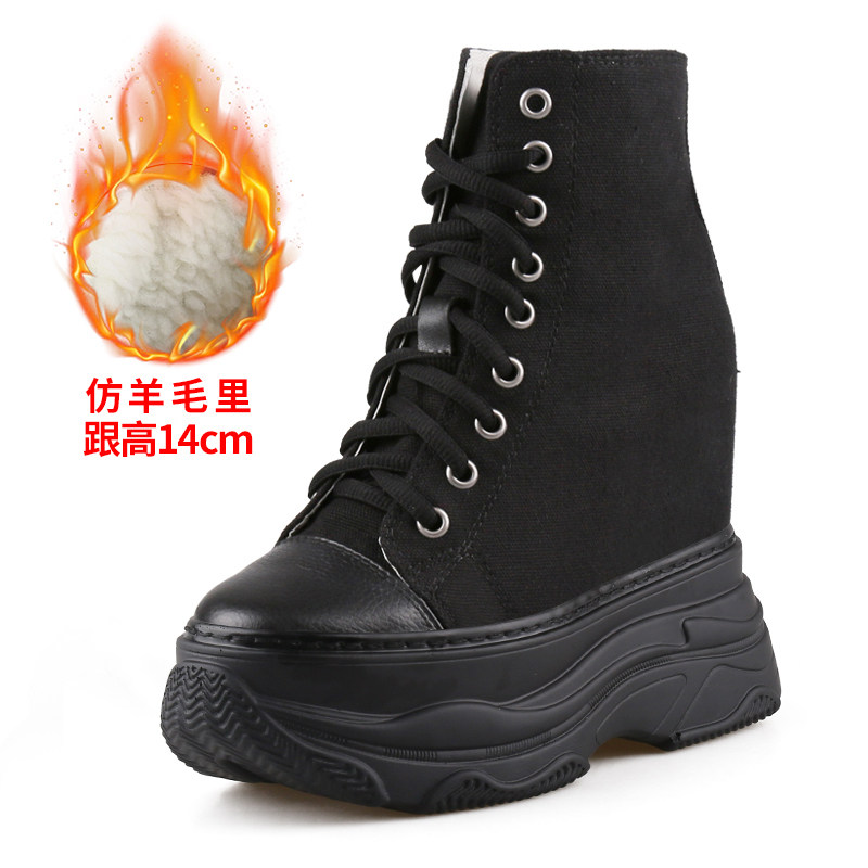 14公分秋冬加绒休闲运动老爹鞋 断码 女内增高鞋 松糕跟厚底帆布鞋 鞋