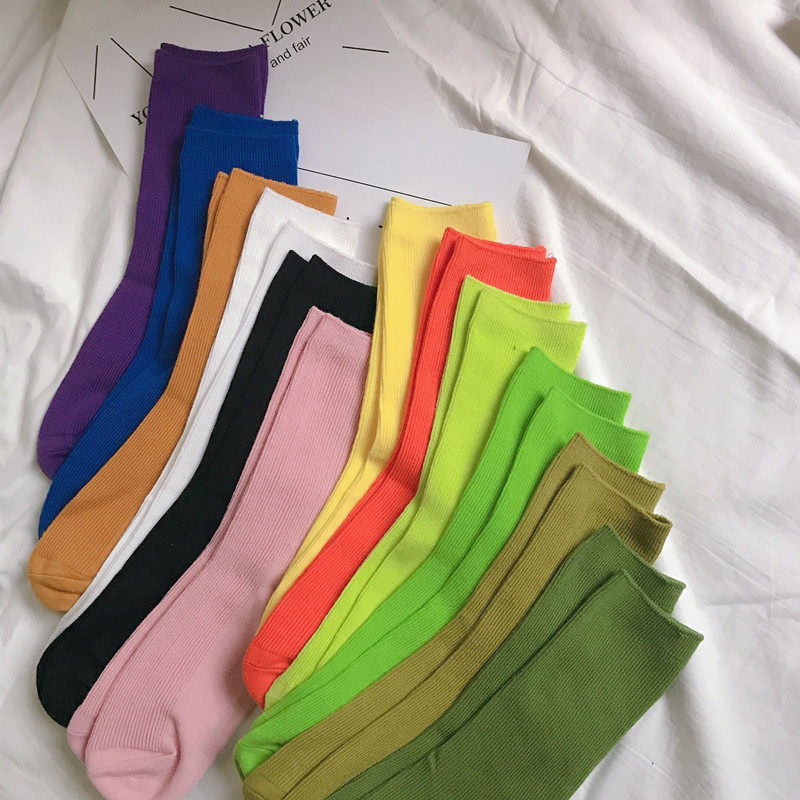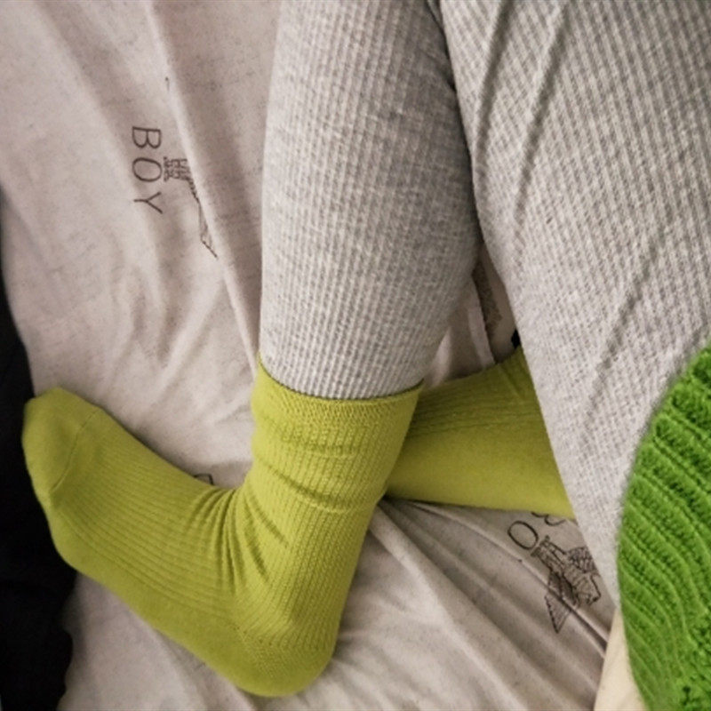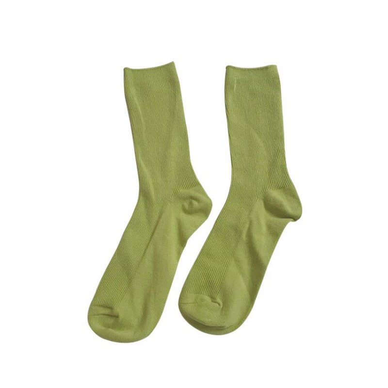 春夏春秋果绿色袜子女中筒袜牛油果韩国ins潮长女黑色学生堆堆袜
