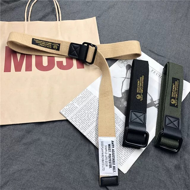 ins风日系复古工装 腰带男潮双环扣帆布腰带男潮流帆布皮带男女 裤