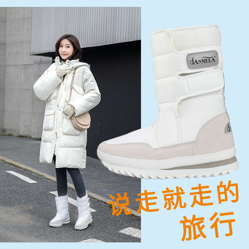 2024冬季 子 旅游雪地靴女平底防滑保暖靴加厚防水中筒短靴东北棉鞋