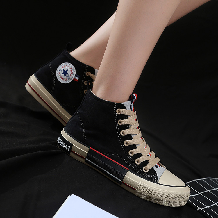 学生休闲运动百搭情侣板鞋 环球厚底黑色帆布鞋 新款 2025秋季 男 男款