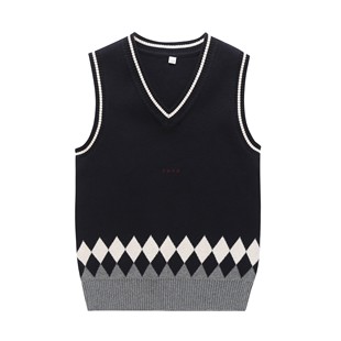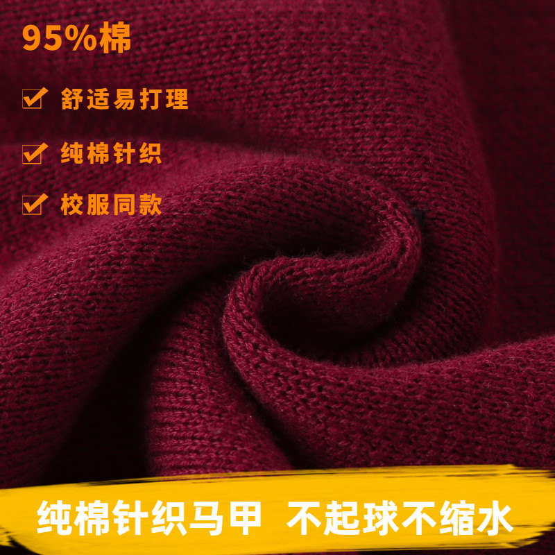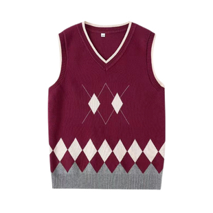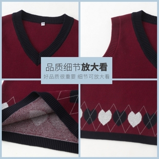 男女童马甲针织衫 学生春秋全棉针织背心 英伦风毛衣校服枣红菱形