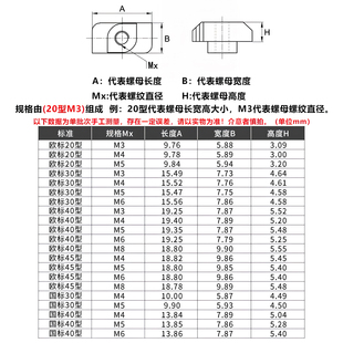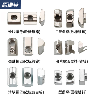 铝型材螺母T型滑块钢珠弹性片欧标国标锤头船型螺帽20 40MM6M8