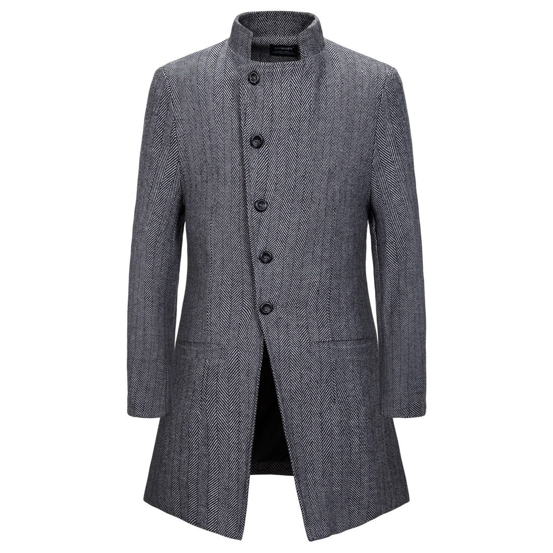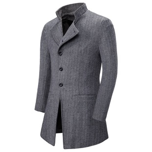 呢子西装 加厚宽松过膝风衣男韩版 外套 中长款 毛呢大衣男灰色秋冬季