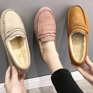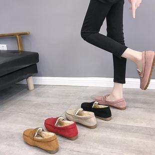 毛毛鞋 浅口平底温柔复古舒适奶奶鞋 秋冬新款 毛呢蝴蝶结加绒单鞋