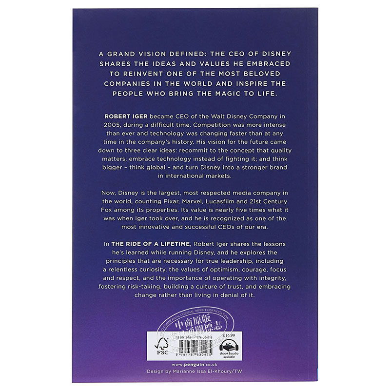一生 The Iger 预售 Robert Lifetime Ride Walt 旅程:迪士尼CEO罗伯特·艾格传记 英文原版 中商原版 Disney