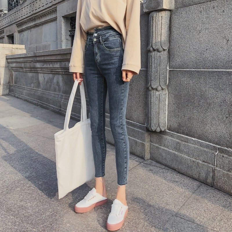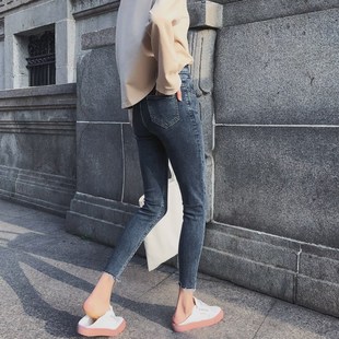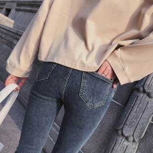 子 网红显瘦紧身八分提臀铅笔裤 潮牌超高腰九分小脚牛仔裤 女春秋款