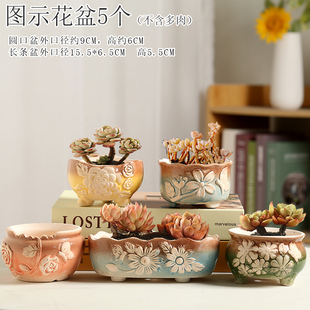 句号植物多肉花盆陶瓷特价 室内肉肉清仓大口径拼盘小号小花盆粗陶