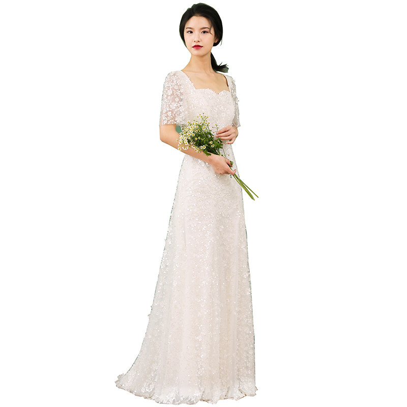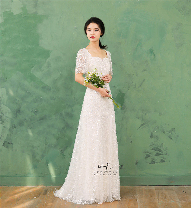 收腰显瘦法式 新款 复古重工蕾丝新娘轻婚纱出门纱定制 花海