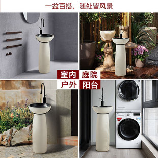 立柱式 洗脸盆陶瓷立柱盆户外洗手盆台一体庭院花园水池洗面盆阳台