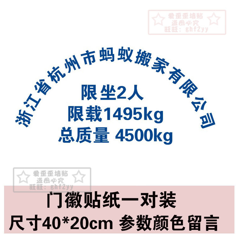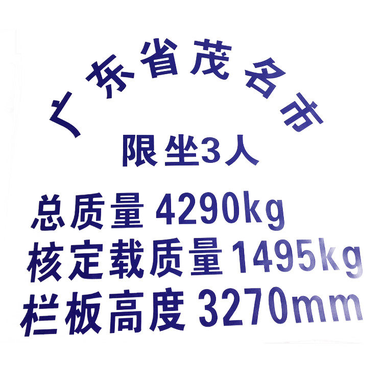定做五菱皮卡小货车拱形汽车身门放大改装 字限坐载总质量年审贴纸