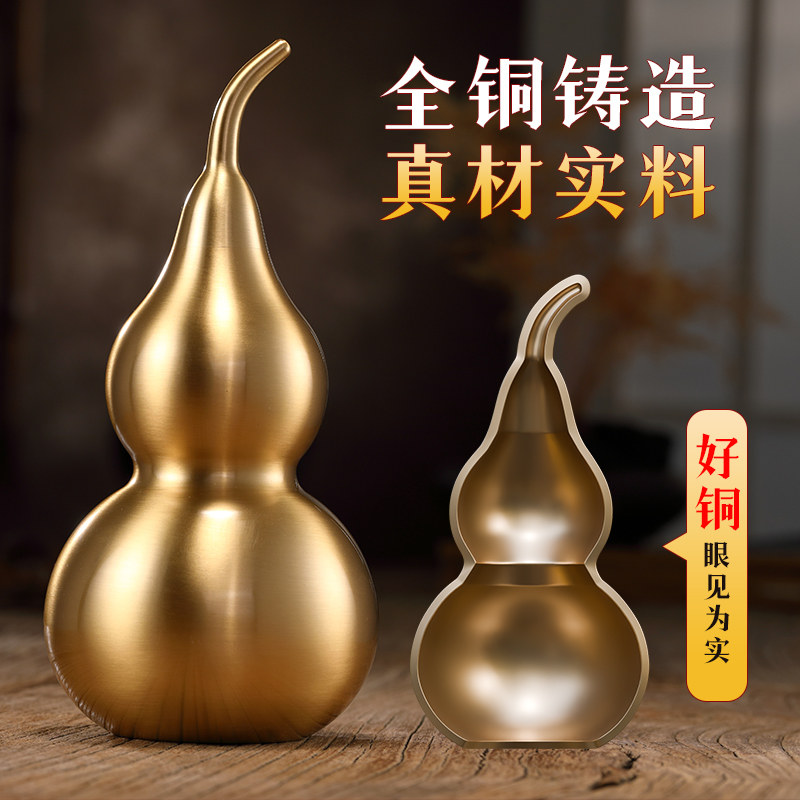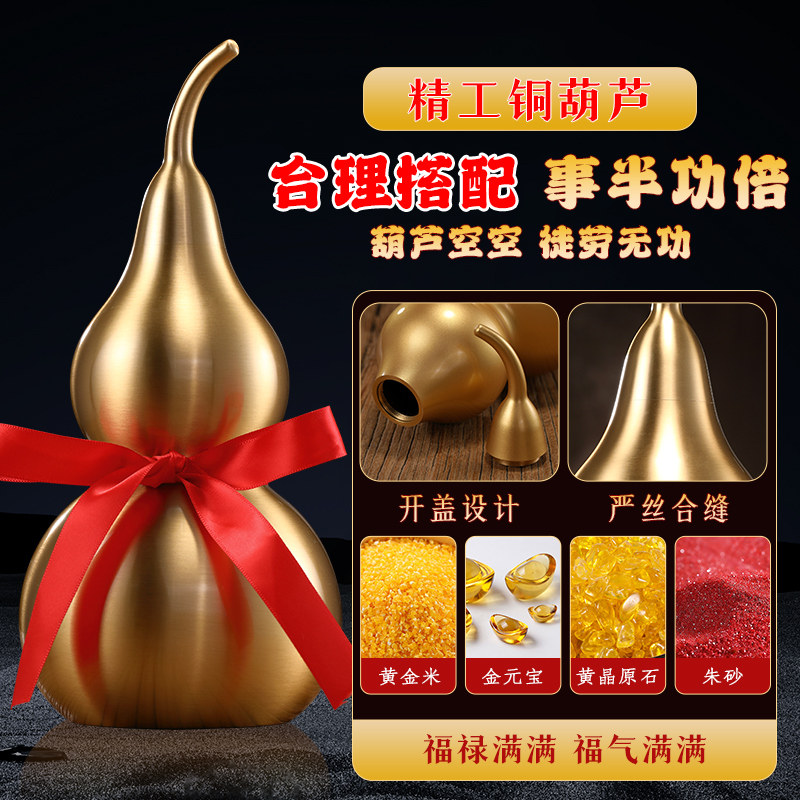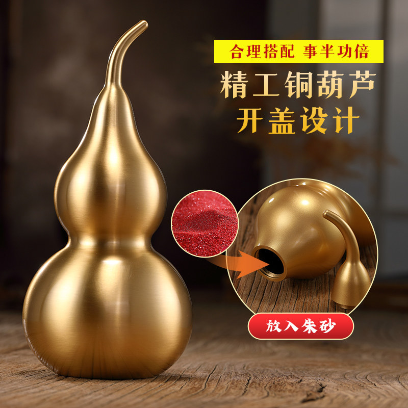 铜葫芦开盖空心装 饰品 朱砂挂件黄铜葫芦摆件家居客厅玄关办公室装