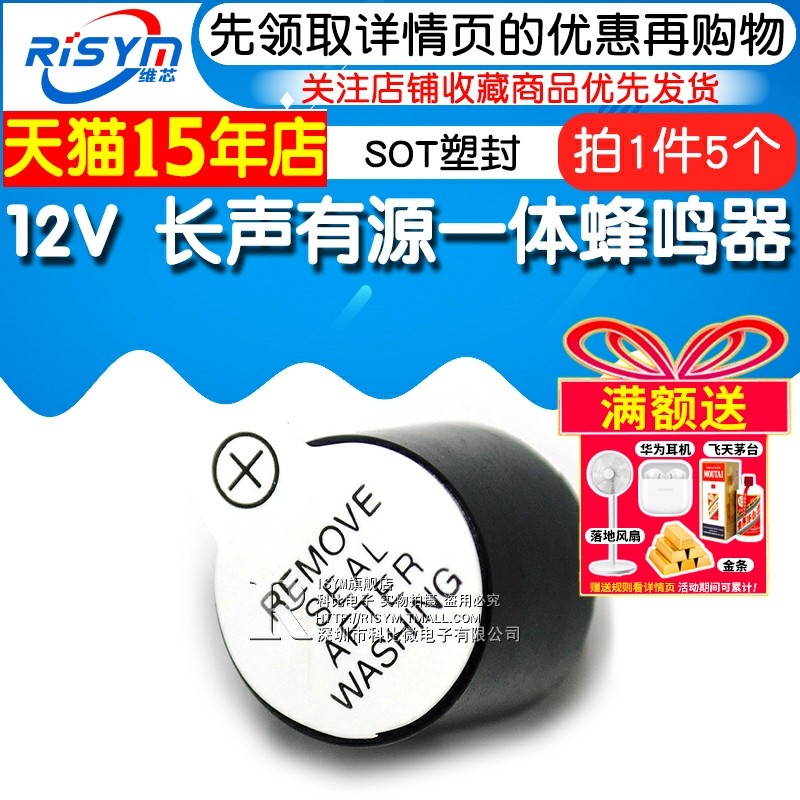 SOT塑封长声蜂鸣器 12V 5个 TMB12A12有源一体蜂鸣器发声 Risym