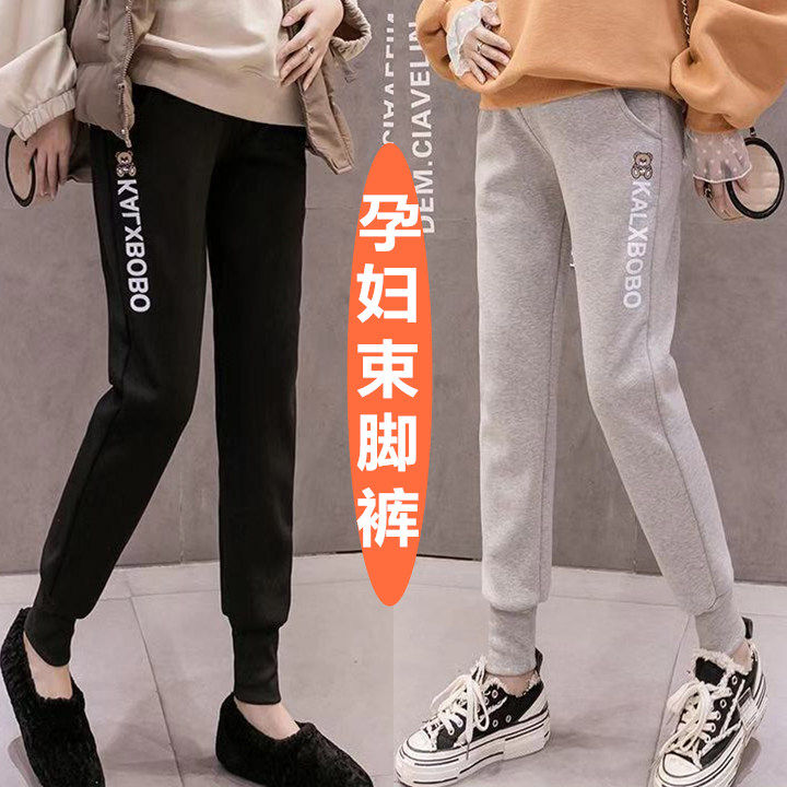 孕妇装 孕妇裤 运动打底长裤 外穿加绒加厚托腹休闲宽松大码 春秋冬季