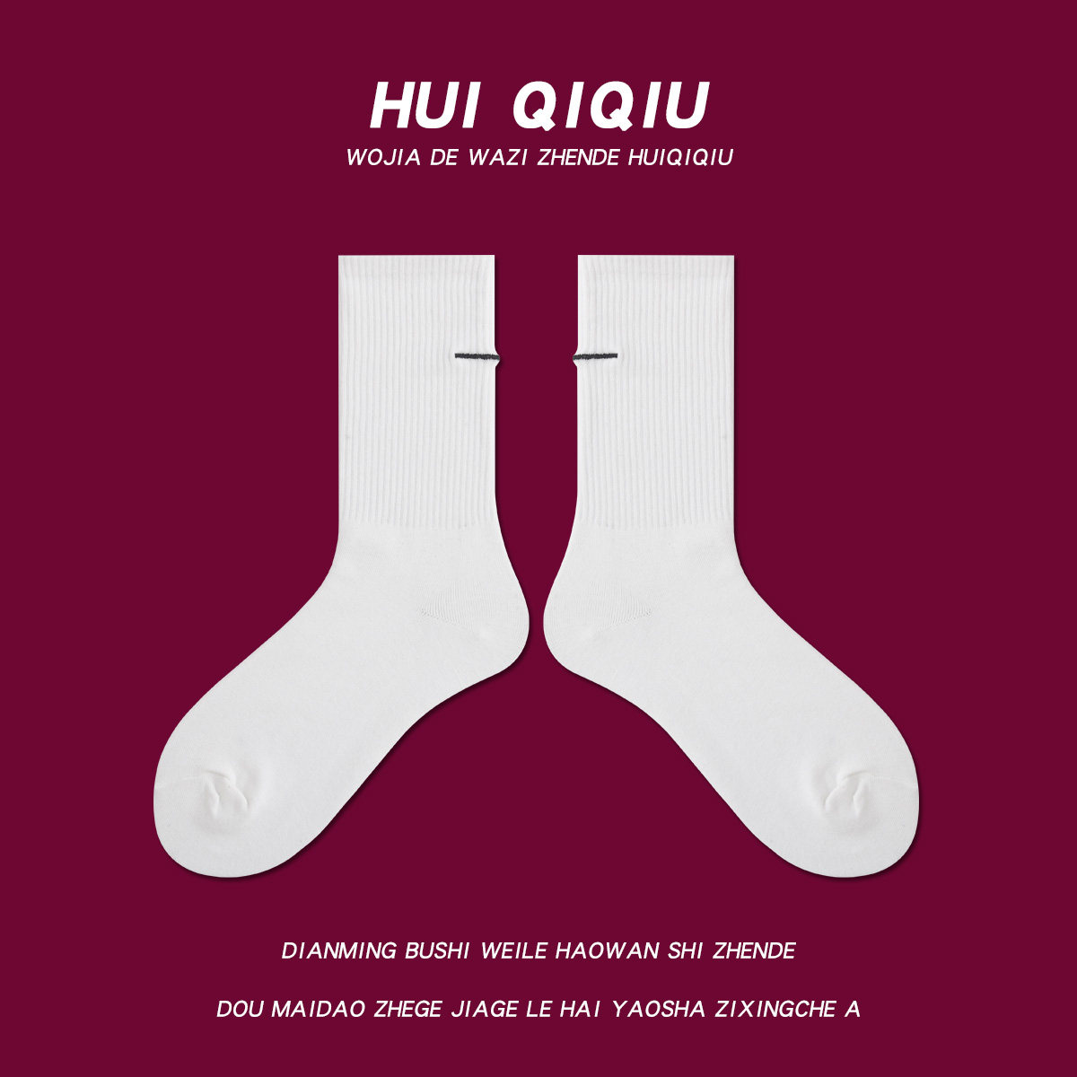 吉良先生 短筒袜纯棉秋冬吸汗防臭男中筒袜潮ins女袜 黑白袜子男士
