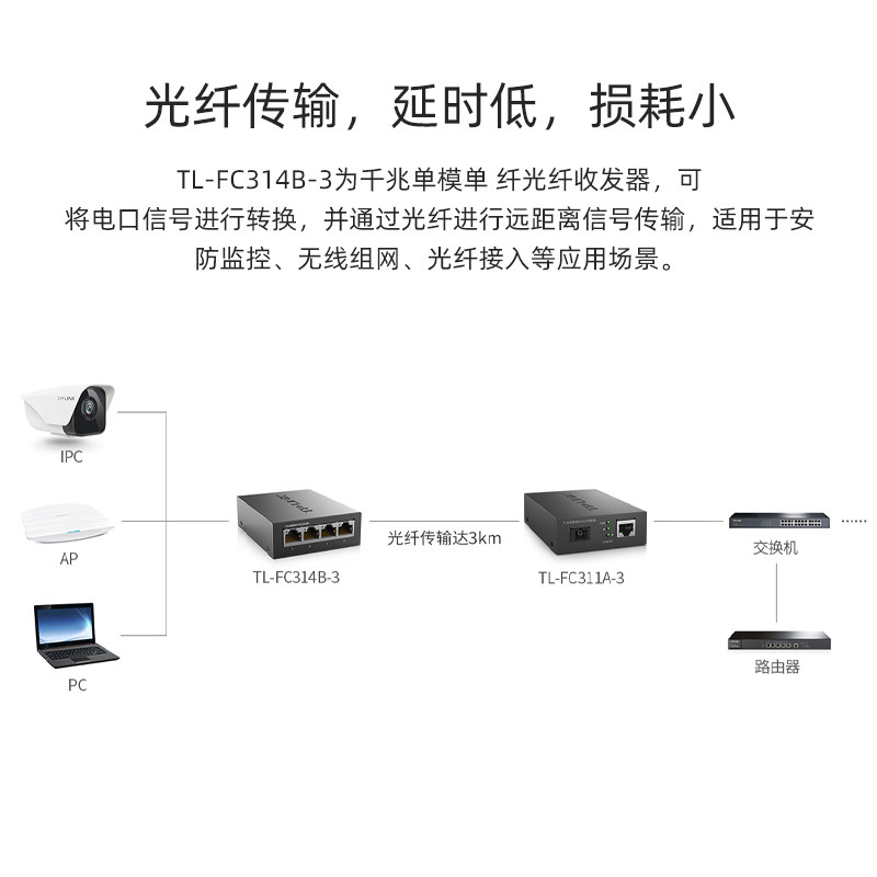 FC311A 模块 LINK一对tplink SC接口3公里 千兆单模单纤光纤收发器光电转换器 1光4电 FC314B