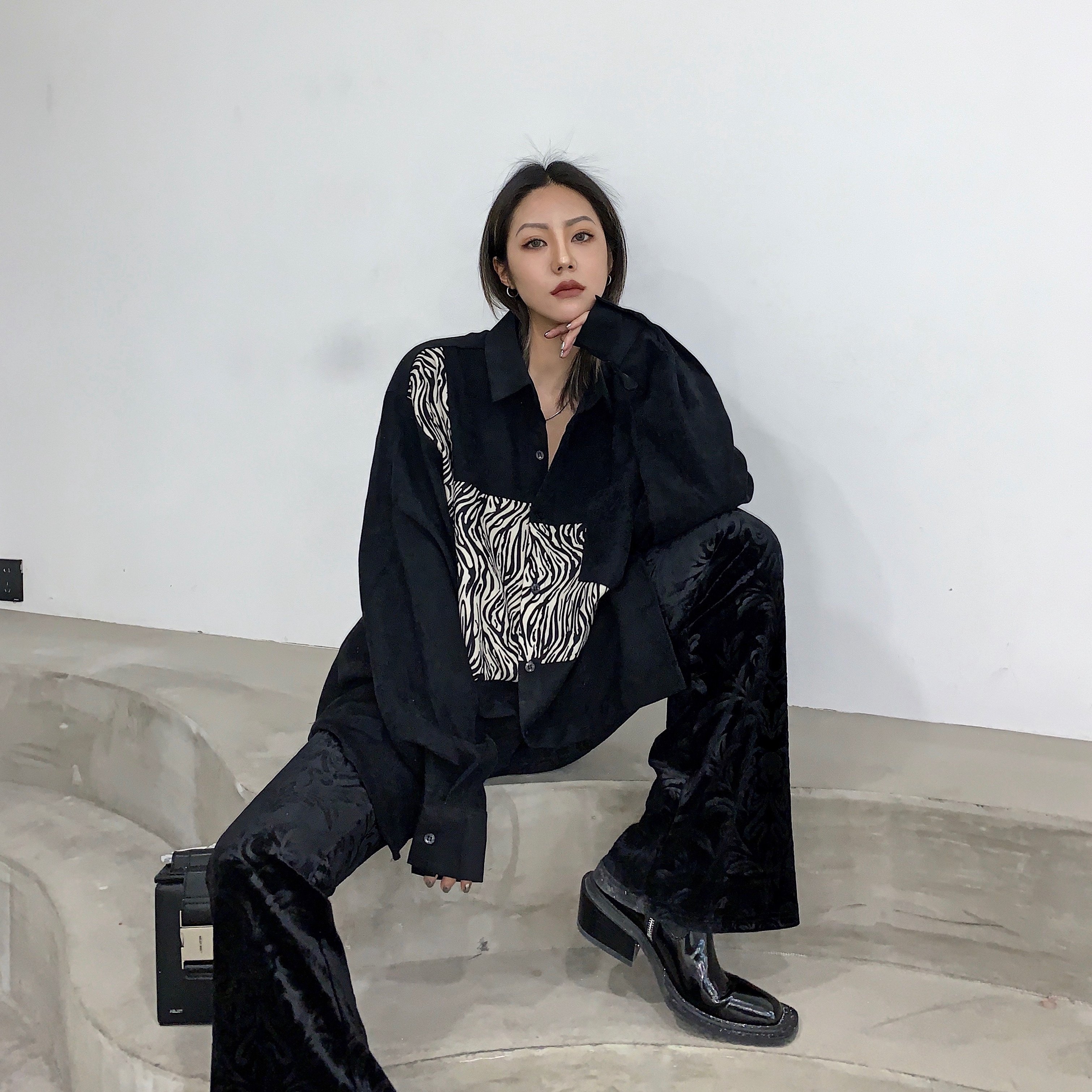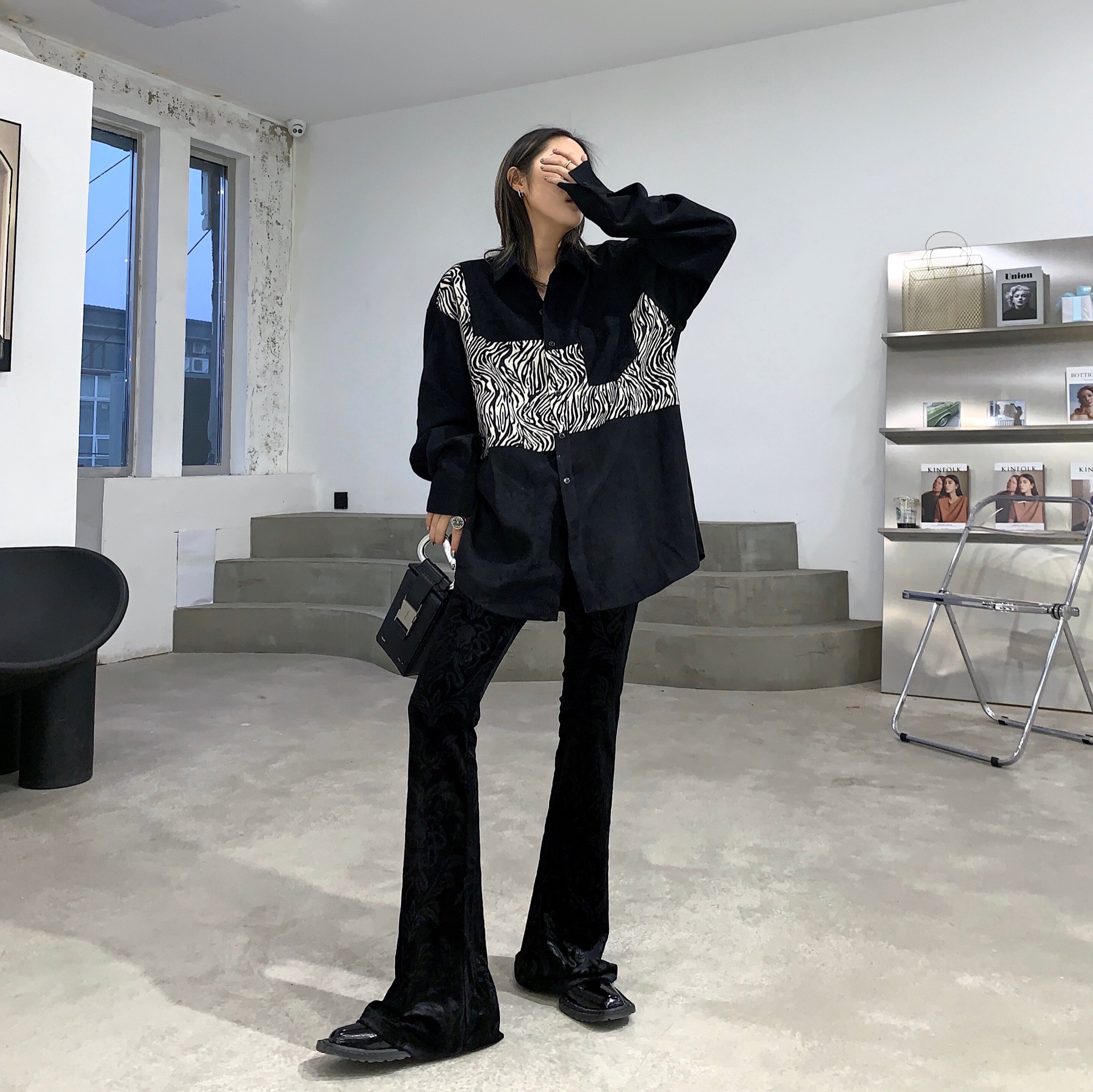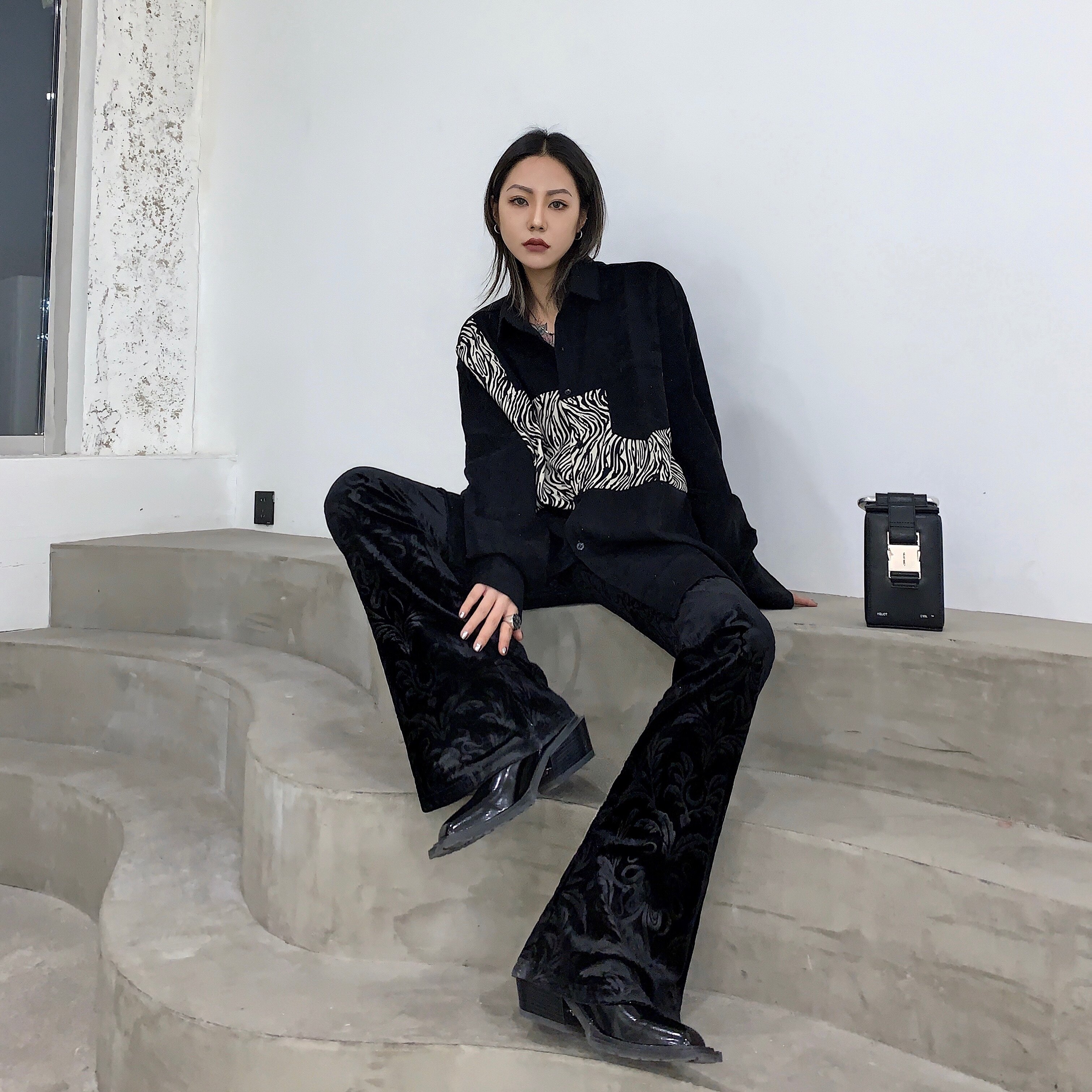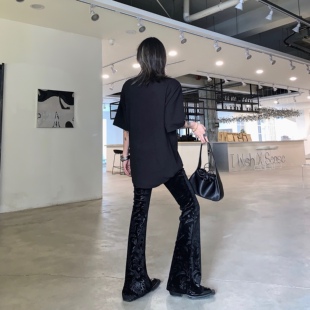 高腰裤 Aaakane 显瘦喇叭裤 修身 子女早春 复古暗纹薄丝绒垂感马蹄裤