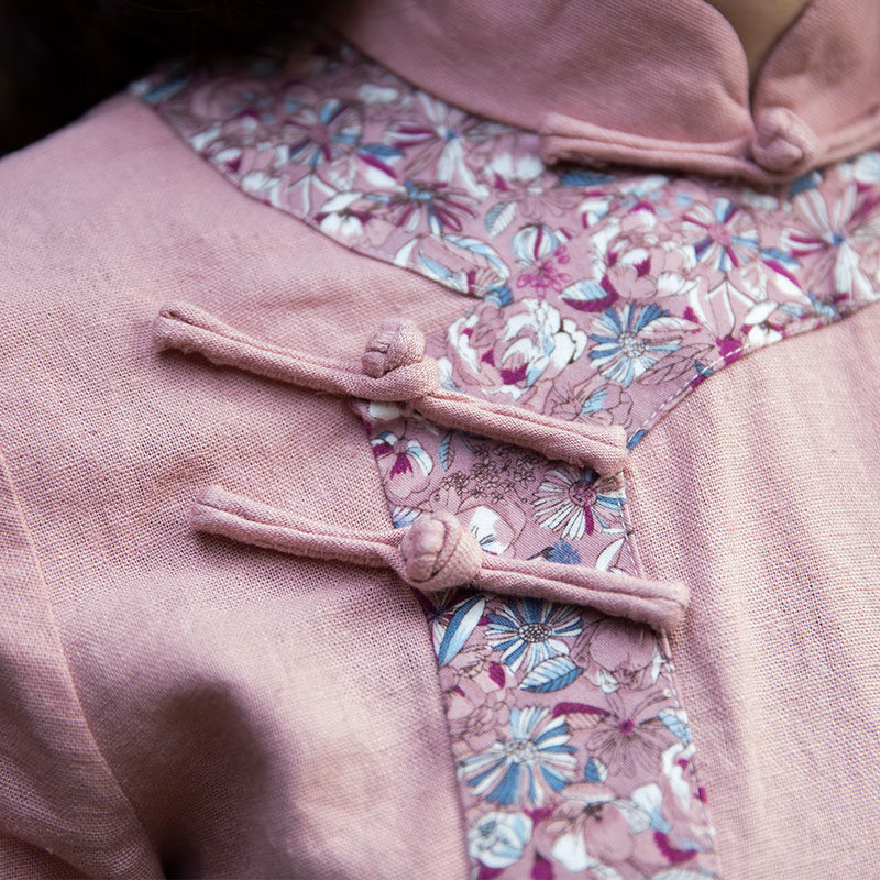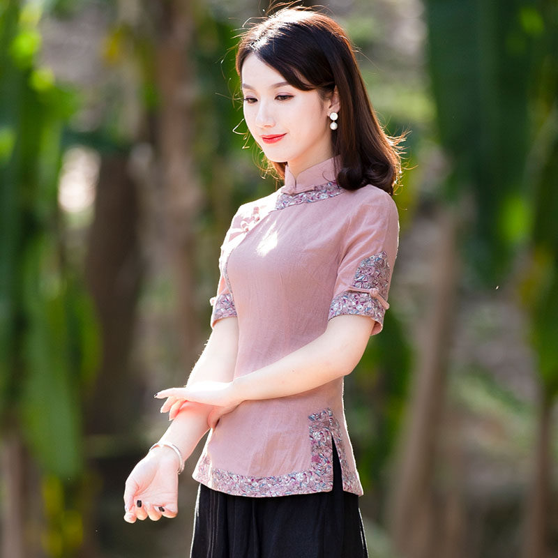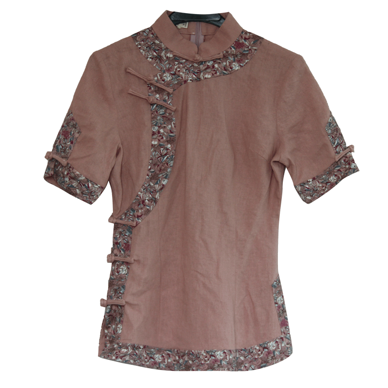 女装 中式 中国风年轻款 上衣棉麻复古盘扣短袖 旗袍式 筠雅唐装