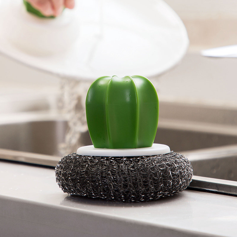 居家家带手柄清洁球海绵擦厨房用品洗碗刷子家用钢丝球刷锅洗锅刷