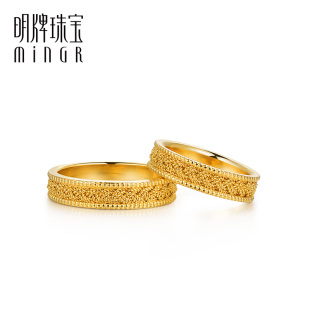 明牌珠宝黄金戒指 计价 Mingles相偕系列足金编织情侣对戒AFM0117