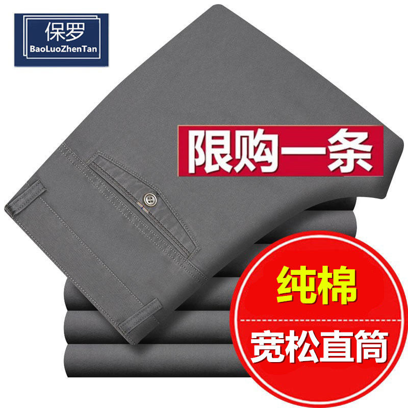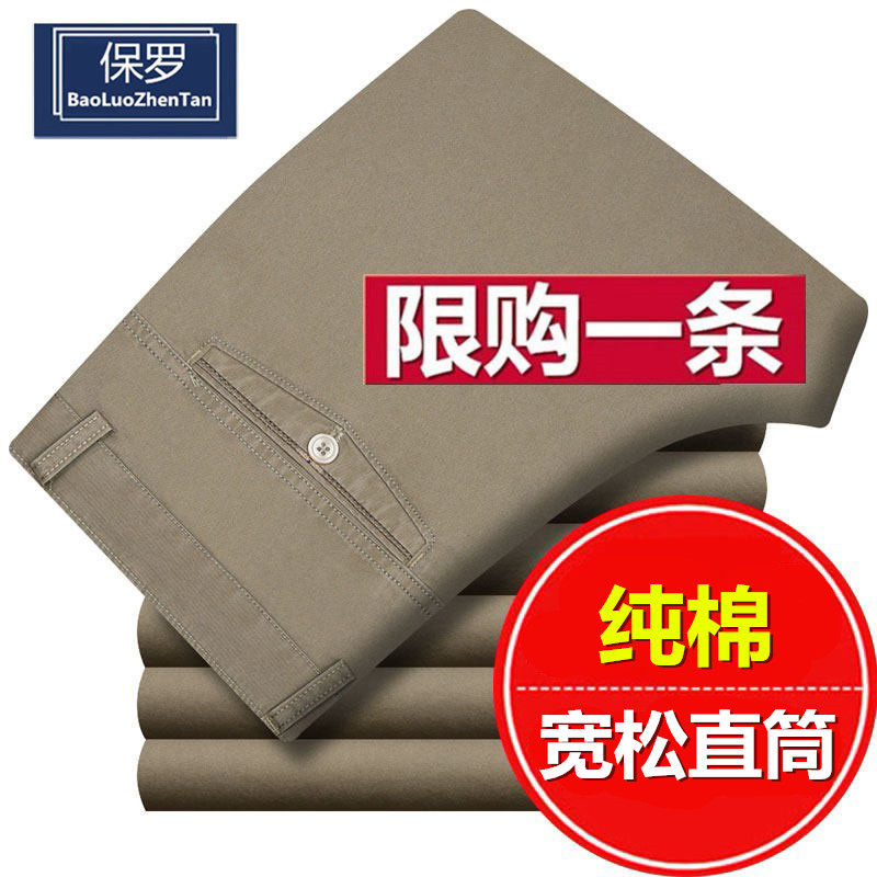 爸爸裤 保罗全棉休闲裤 中老年高腰纯棉男裤 宽松直筒春夏新款 子 男士