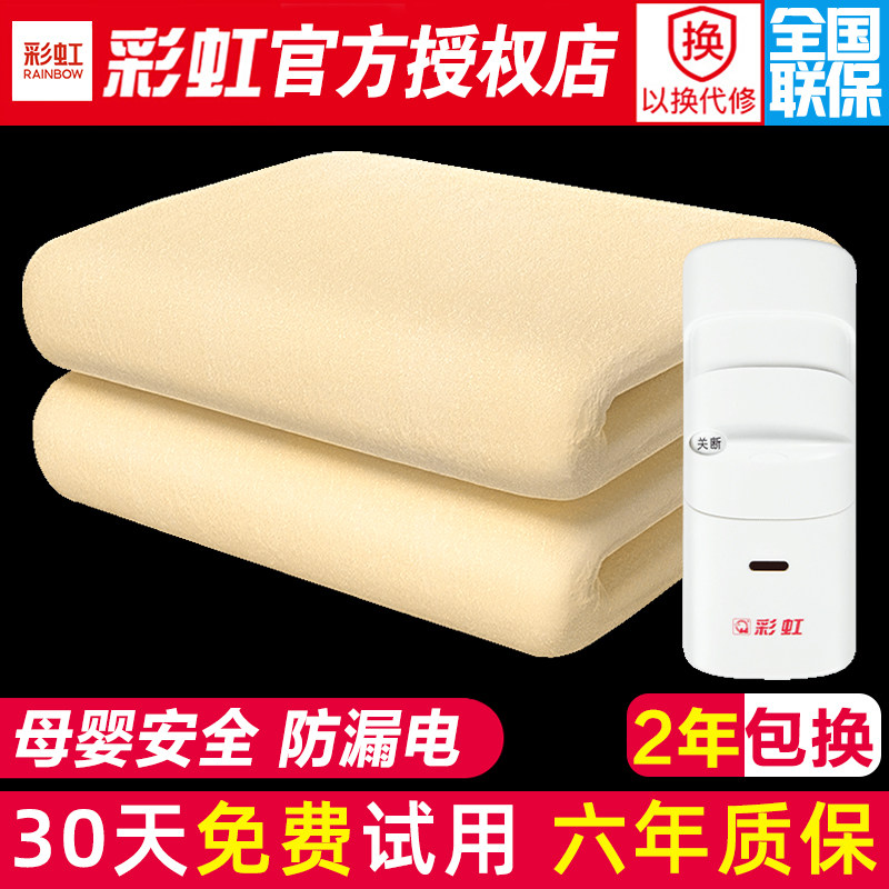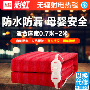 彩虹牌电热毯单人双人旗舰店双温双控调温家用安全电褥子官方正品