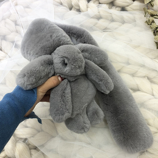 长耳兔獭兔毛围巾保暖加厚冬季 韩版 皮草围脖 敲可爱兔围巾 cc家