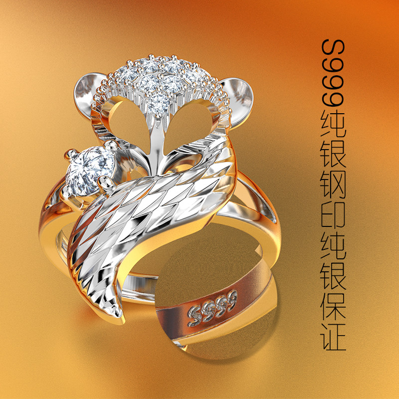 狐狸戒指镀铂金饰桃花戒指女开口可调节食指无名指时尚 戒子创意