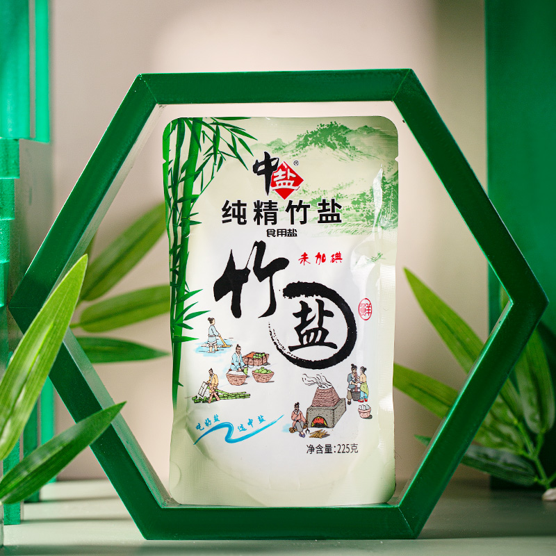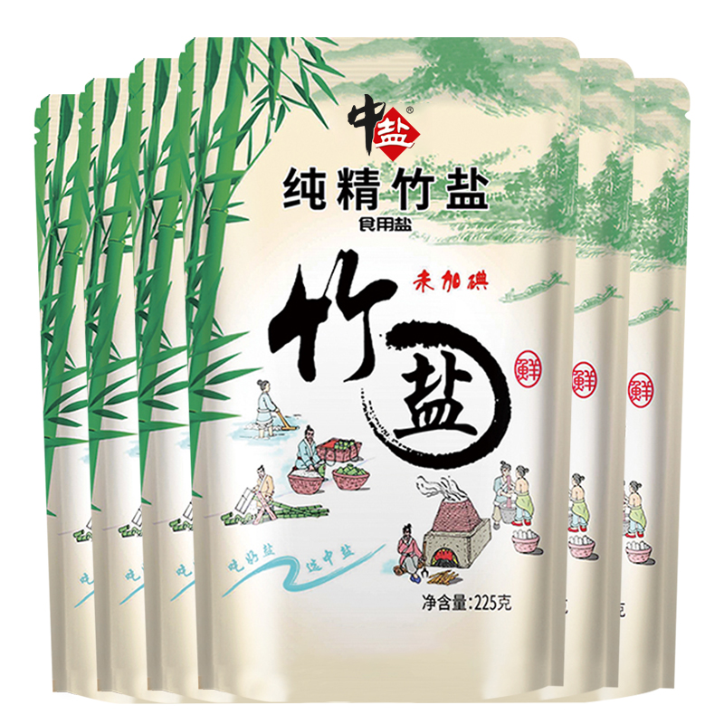 中盐未加碘竹盐225g 6包1350g无抗结剂优细海盐碱性熟盐食用盐