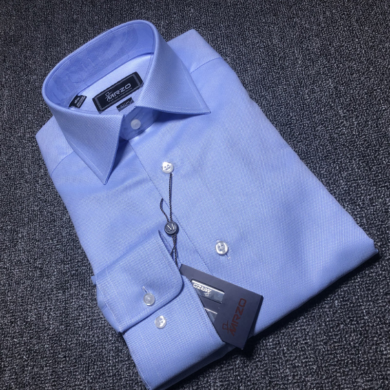 商务款 MRZO全棉进口面料欧美男装 衬衫 抗皱长袖 蓝色34 商务正装