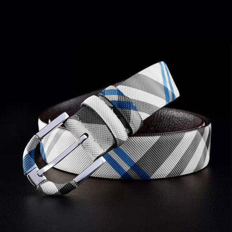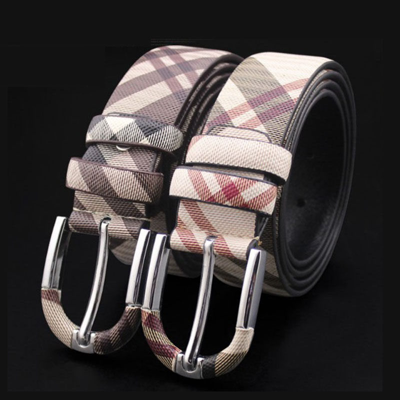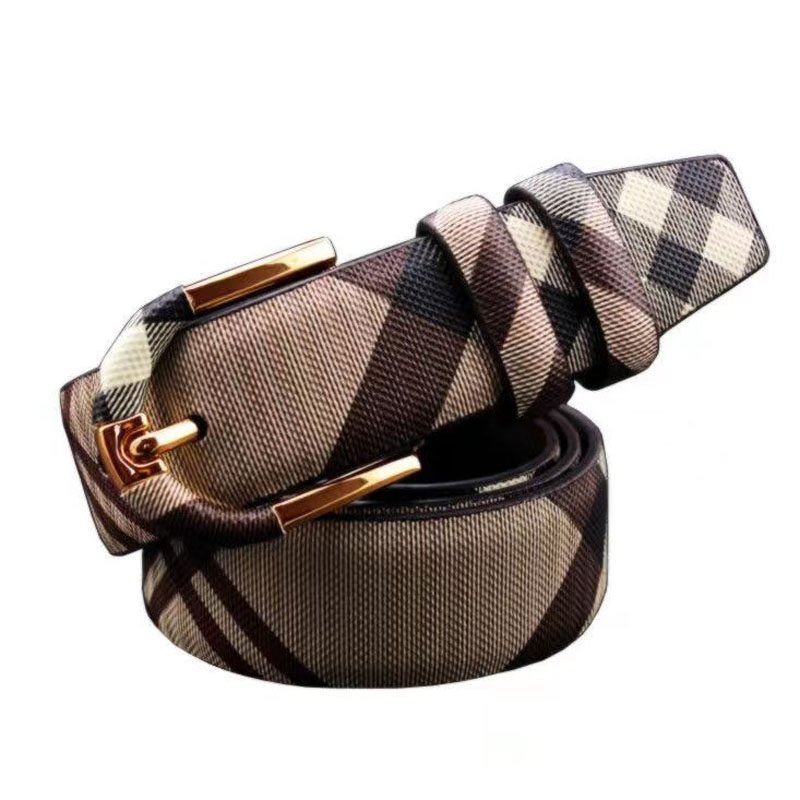 时尚 2025热销新款 带 休闲针扣裤 百搭皮带 男女青年格子纹真皮腰带