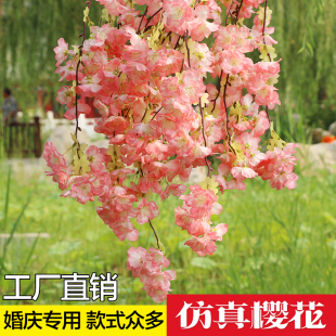 仿真樱花枝婚庆梨花桃花树塑料假花藤条装 饰吊顶绢花室内客厅落地