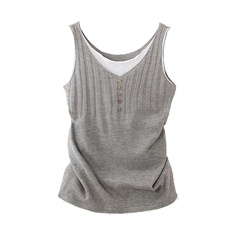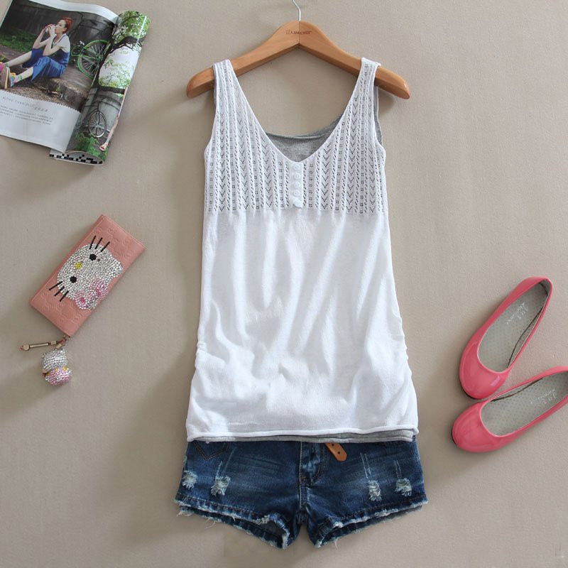 大码 夏季 女装 外穿上衣百搭宽松打底针织衫 假两件吊带背心 镂空无袖