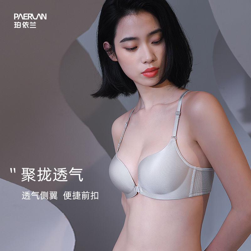 珀依兰 无痕无钢圈美背防滑不溜肩小胸聚拢文胸 前扣内衣女一片式