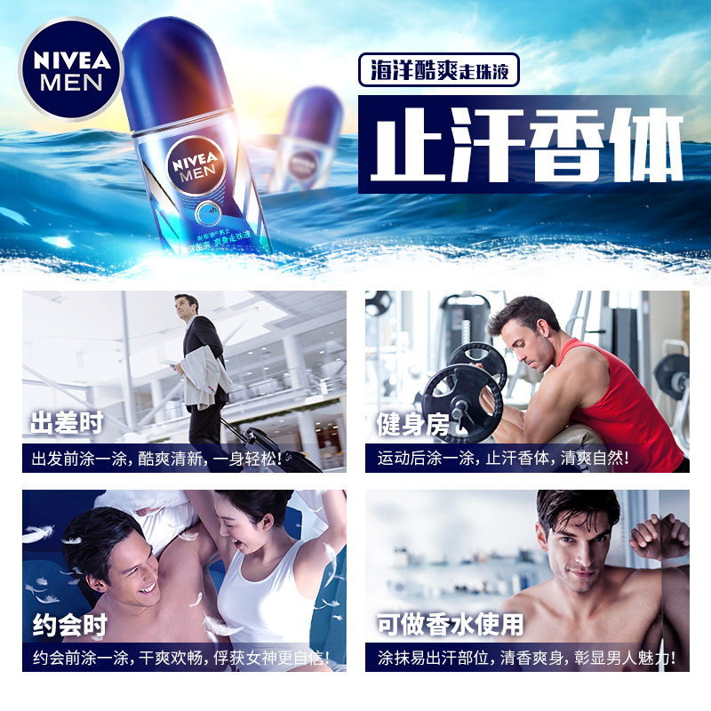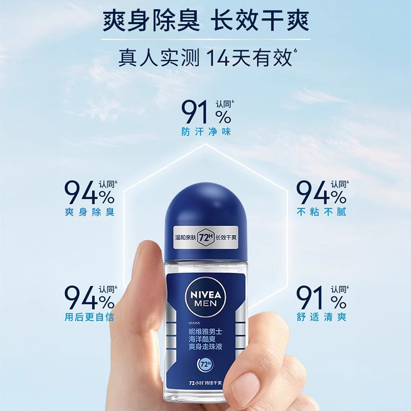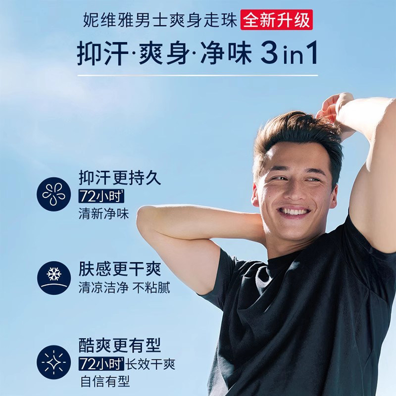 妮维雅止汗露男士 专用走珠液腋下除臭喷雾滚珠香体爽身除汗臭抑汗