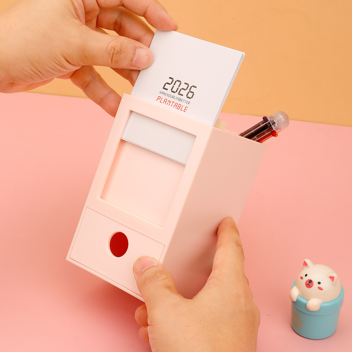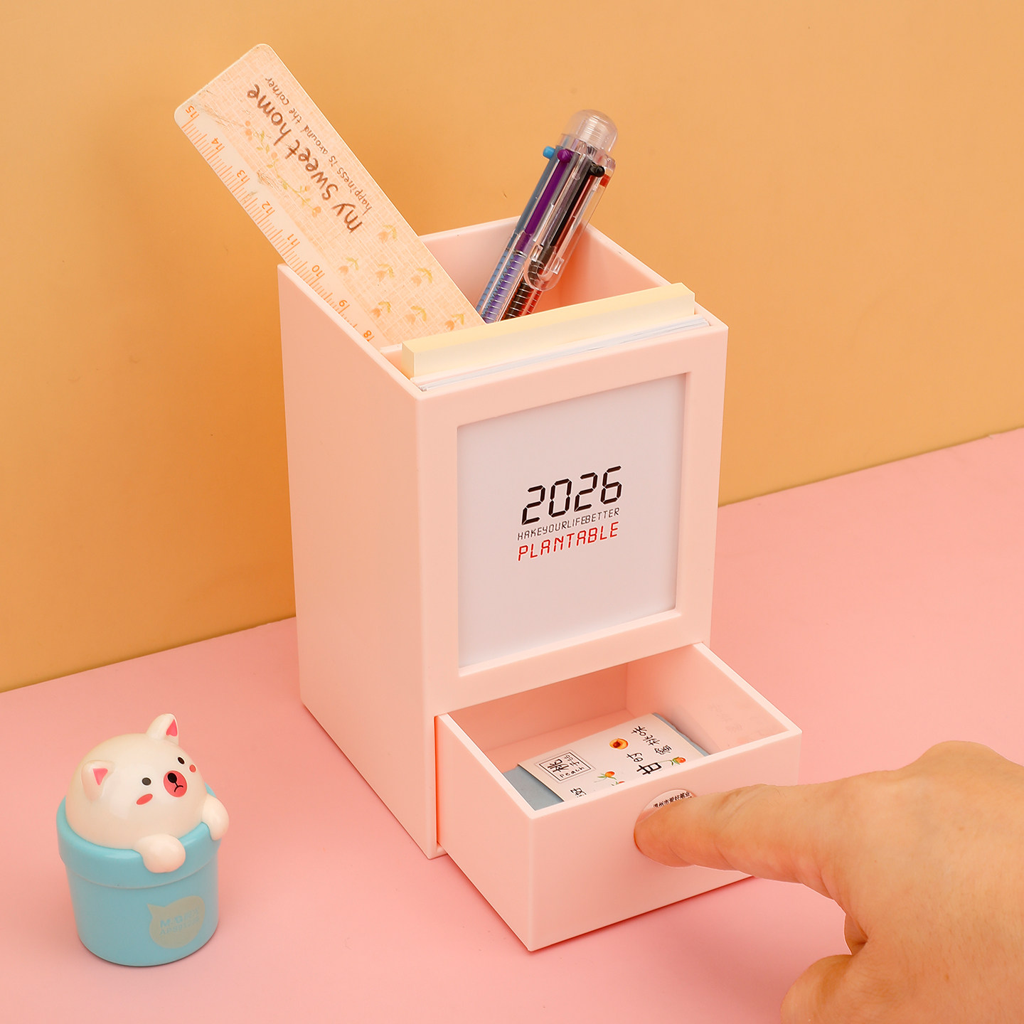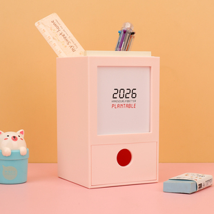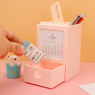 得力桌面收纳盒抽屉式 笔筒 口红化妆品收纳书桌文具置物架斜插式